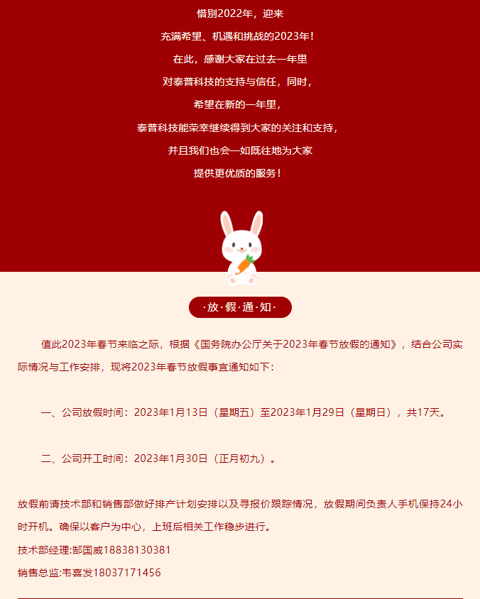 泰普科技|春節(jié)放假通知